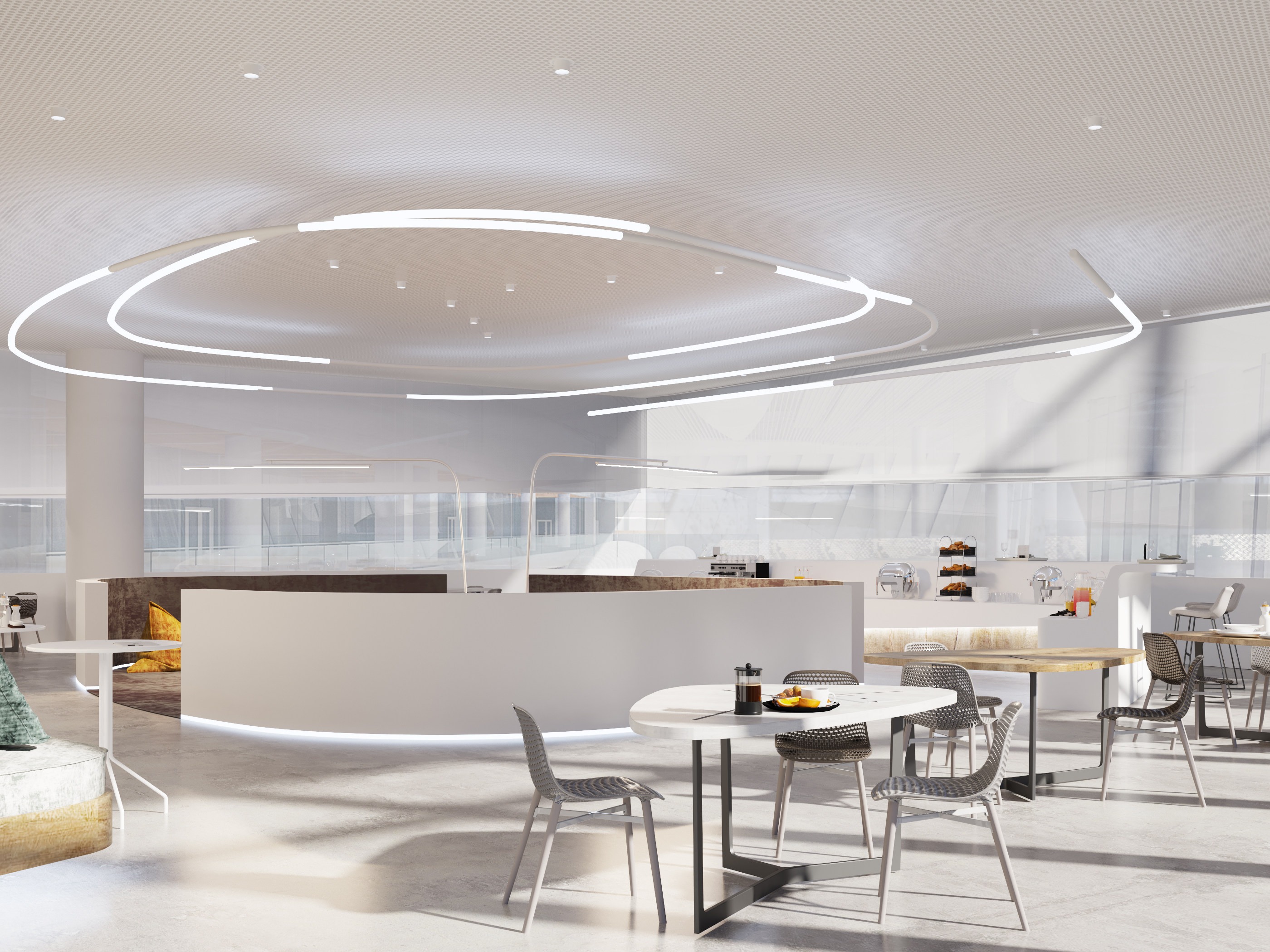 The image of lightness, a gleam of the plane wing and dynamic light stripes – the associations closely tie the VIP zone decoration theme with the essence of the space.